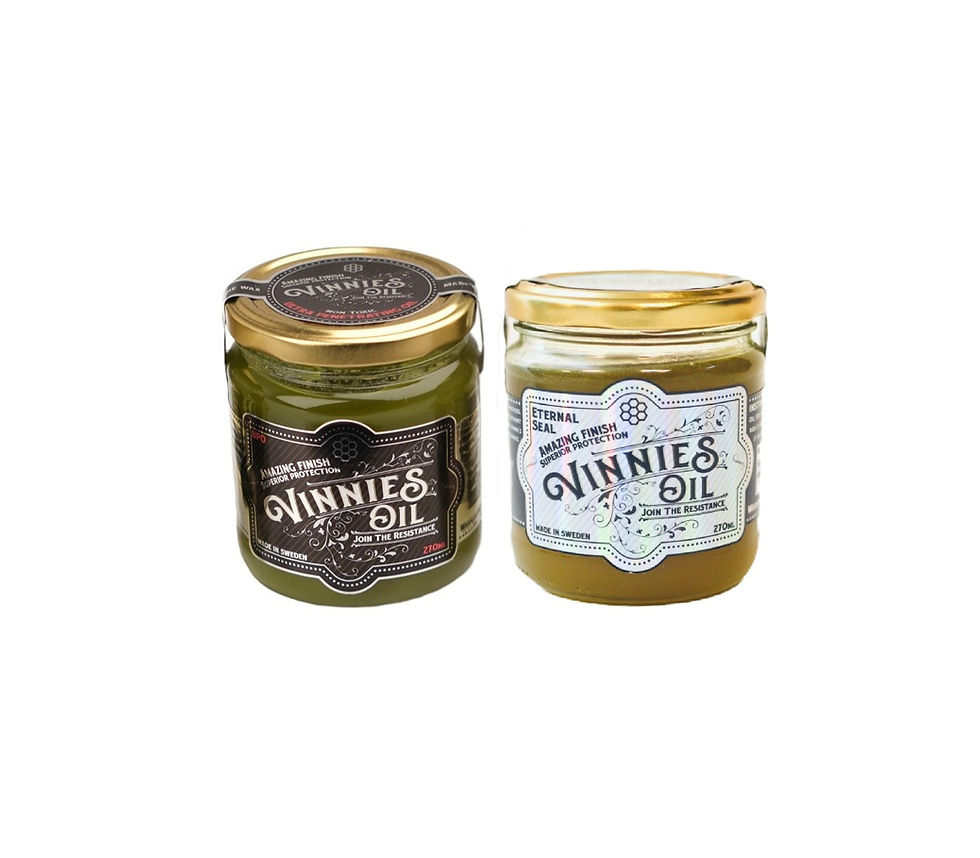 Vinnie's Oil system for wood. Is a series of toxic free and VOC free hardwaxoils for wood, that consists of high quality coldpressed and polymerizing oils. With naturally small molecules for better penetration. And hard waxes controlled for purity and toxins to make sure its not cheap waxes mixed with anything we do not want, like paraffin oil. Together they make a system for wood that protects the wood from all its challenges, just like a living tree with its resin and its bark.
